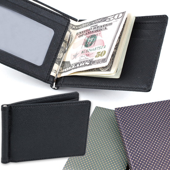 유러피안 지갑형 소가죽 머니클립(블랙)