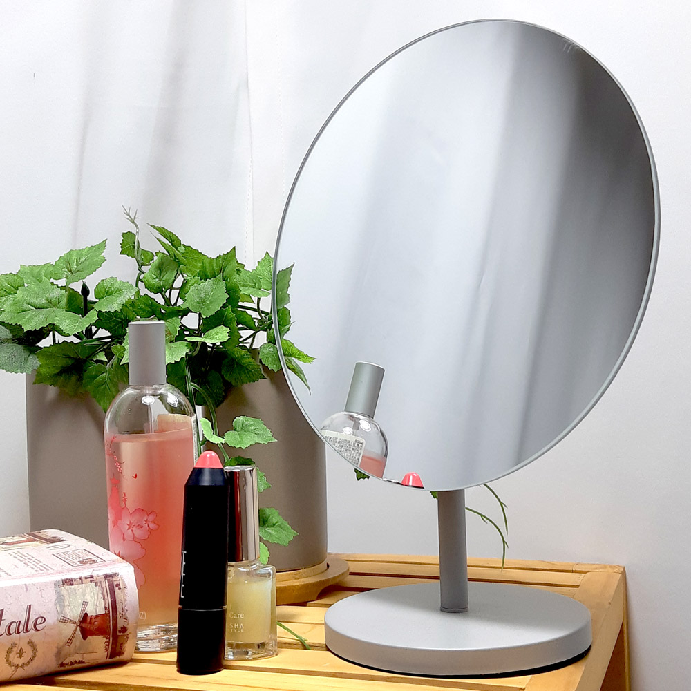 원형 메탈 그레이 탁상거울 (대)