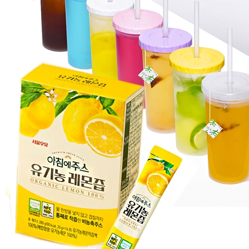 레몬즙 + 빨대텀블러 1+1 서울우유 레몬즙100% 14포,반투명