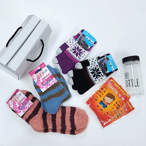 [선물세트 5종] 수면양말 양말 터치장갑 장갑 핫팩 손난로 마이보틀 물병 텀블러